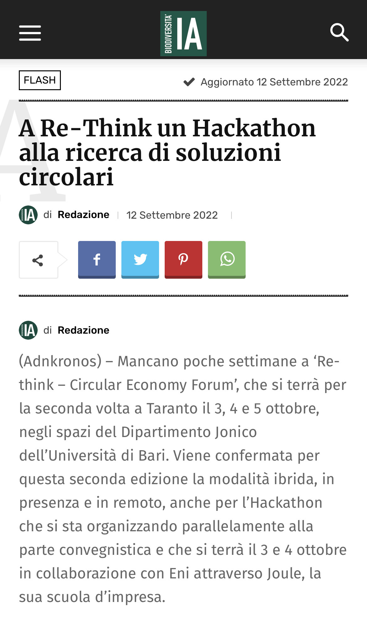 RASSEGNA STAMPA 2022